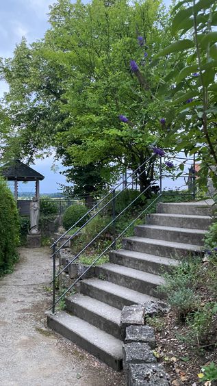 Der Blick auf Hollfelds Unterstadt sowie das Künstlerviertel, die bereits erwähnten liebevoll angelegten Pflanzen, die dort ansässige Fauna und Hollfelds “Mona Lisa“ geben den Gärten ihren berühmten mediterranen Charme und laden zum Verweilen mit der ganzen Familie ein.